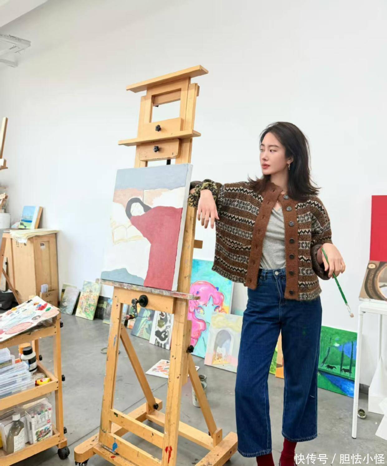 除了拍戏,闲暇的时候,杨采钰喜欢绘画调节业余生活,这是专属于她自己的画廊,和她画中的人物一样安逸舒适,好看的人无论做什么都会拿出最佳状态,她是大美女也是艺术家。